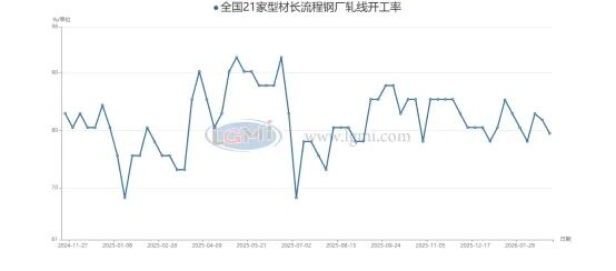 從全國21家長流程型鋼鋼廠軋線開工率數(shù)據(jù)來看,2026年2月開工率呈現(xiàn)同比回升、環(huán)比小幅回落的態(tài)勢。具體來看2026年2月開工率約為82%,較2025年同期的78%提升約4個百分點(diǎn)。主要得益于節(jié)后復(fù)工節(jié)奏加快,以及終端需求提前釋放,長流程鋼廠生產(chǎn)積極性高于去年同期。從環(huán)比方面來看,2月開工率較1月的85%下降約3個百分點(diǎn)。主要受春節(jié)假期影響,部分鋼廠在節(jié)前進(jìn)行了例行檢修,疊加節(jié)后工人返崗率尚未完全恢復(fù),導(dǎo)致整體開工負(fù)荷有所回落。不過長流程鋼廠開工率的韌性依然較強(qiáng),一方面原料端成本相對可控,鋼廠利潤空間尚可。另一方面長流程產(chǎn)品在規(guī)格、質(zhì)量上的優(yōu)勢,使其在訂單承接中更具競爭力。