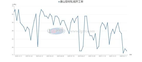 唐山調(diào)坯型鋼廠方面2026年2月開工率約為18%,遠(yuǎn)低于2025年同期的40%左右,同比降幅超過20個百分點(diǎn)。這主要是由于調(diào)坯廠對原料成本更為敏感,在坯料價格高企的背景下,利潤空間被大幅壓縮,導(dǎo)致企業(yè)主動減產(chǎn)。環(huán)比方面2月開工率較1月的13%有所回升,環(huán)比提升約5個百分點(diǎn)。但整體仍處于歷史低位,復(fù)產(chǎn)節(jié)奏明顯慢于長流程鋼廠。唐山調(diào)坯廠開工率的低迷,反映出區(qū)域內(nèi)型鋼供應(yīng)端收縮的格局仍將持續(xù)。