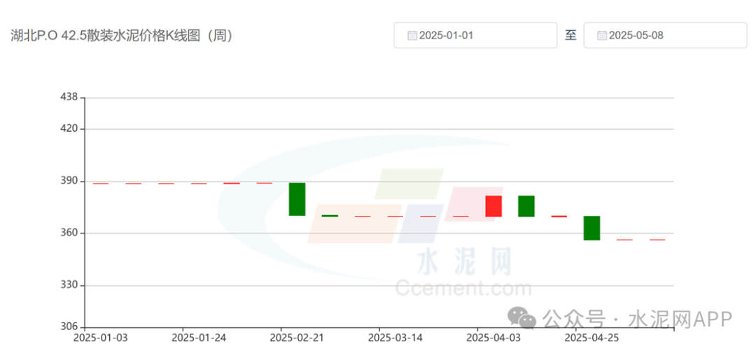 湖北今年以來P.O42.5散裝水泥價格K線圖